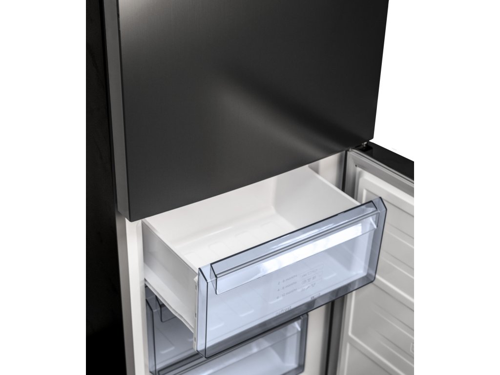 Elegantní celočerné provedení vás osloví, ať už jste milovníkem čistého designu, anebo moderní praktičnosti. Dveře chladničky jsou opatřeny povrchovou úpravou v černém nerezu. Černé jsou také boky chladničky. V horní části dveří chladničky najdete dotykový ovládací panel, díky němuž budete mít vždy přehled.