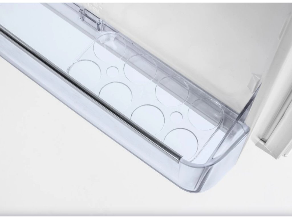 Chladicí část nabízí 2 police z bezpečnostního skla, z toho 1 výškově nastavitelnou. Dále dvě dveřní přihrádky, zásuvku na ovoce a zeleninu a podnos na vajíčka. Osvětlení vnitřního prostoru usnadní orientaci při ukládání potravin.