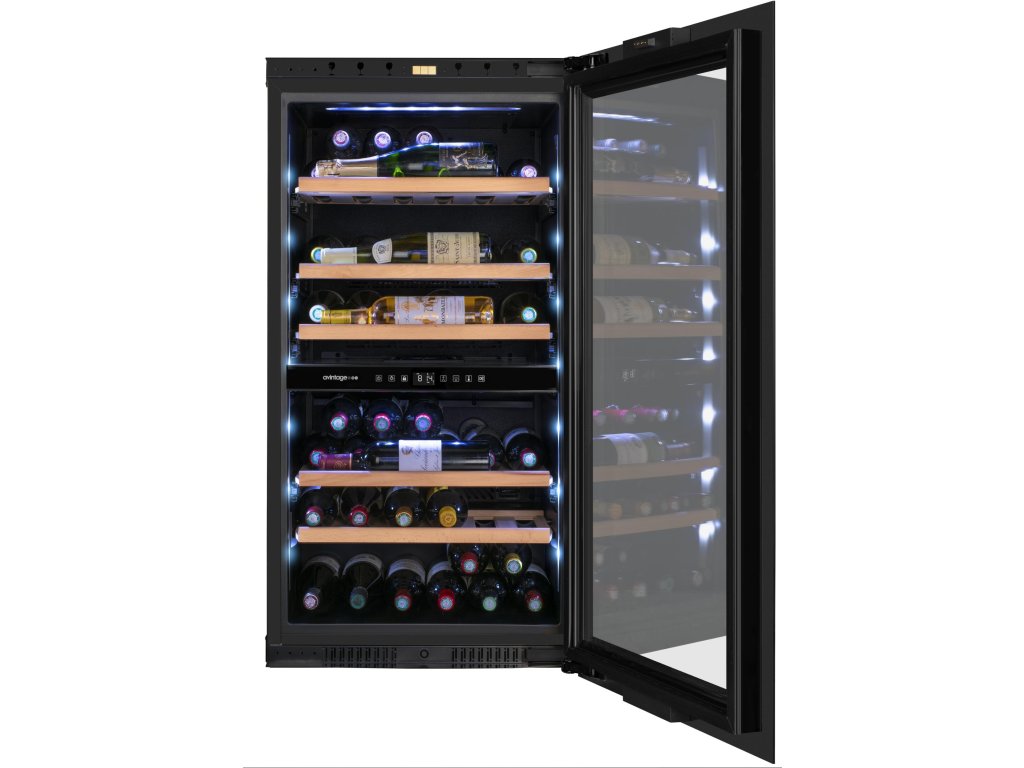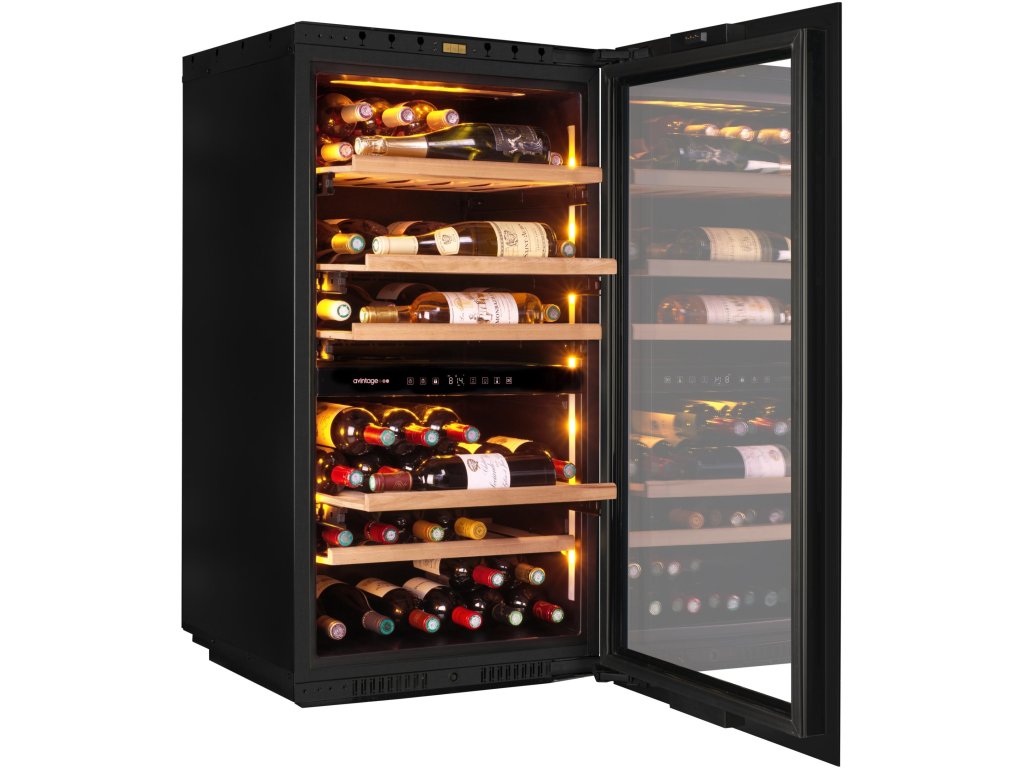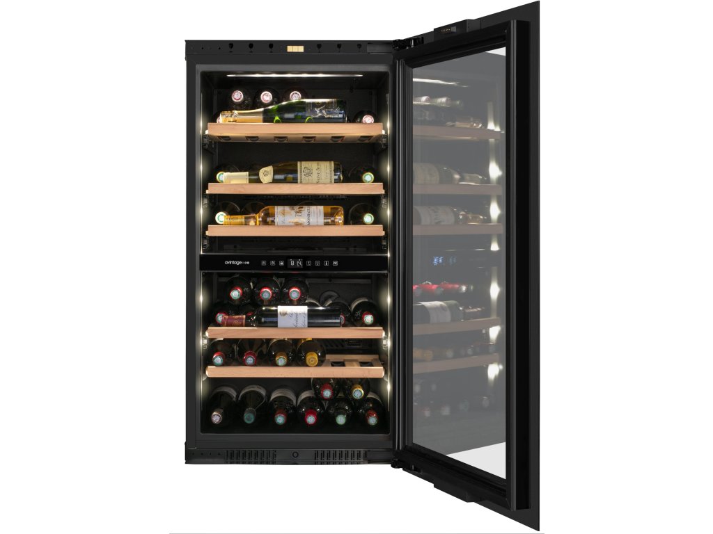 Vinotéka je vybavena 1 polovýsuvnou a 4 výsuvnými dřevěnými policemi z masivního buku na teleskopických výsuvech, které zajišťují snadný přístup k lahvím. Aplikace VINOTAG® vám umožní spravovat svou sbírku vín přímo z telefonu, sledovat jejich stav a zajišťovat dokonalou péči o vaše vína. Systém přední ventilace umožňuje snadnou instalaci bez nutnosti zajištění složitého zadního odvětrávání.