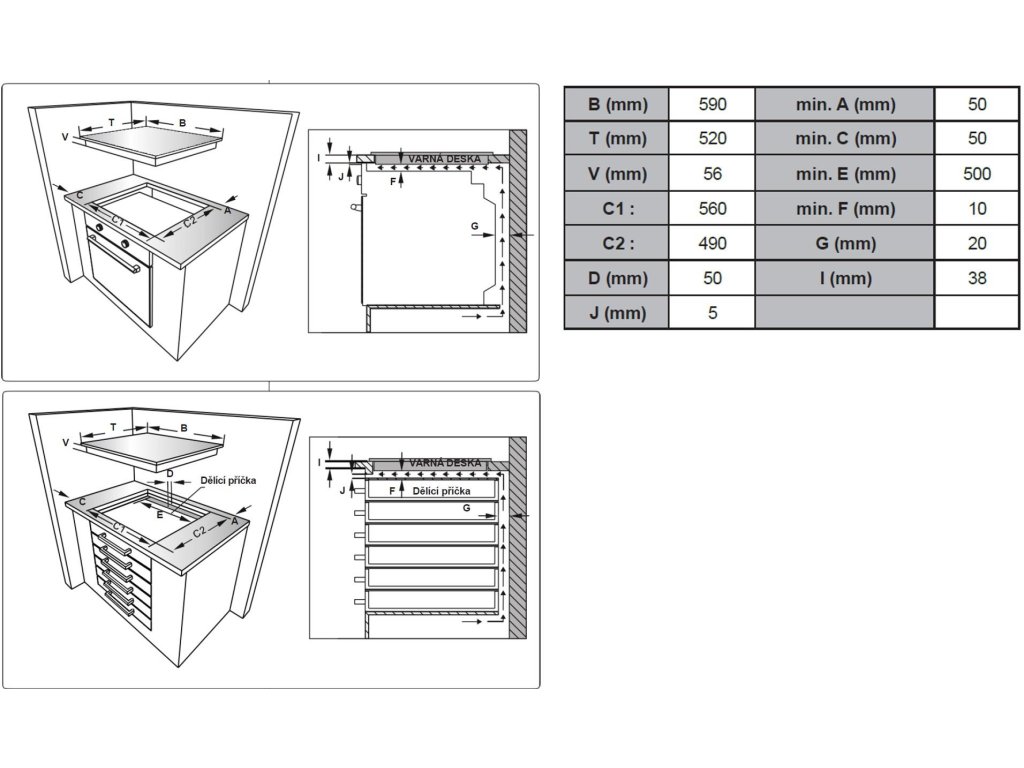 | Možnost zapuštění varné desky do pracovní desky: | Ano |