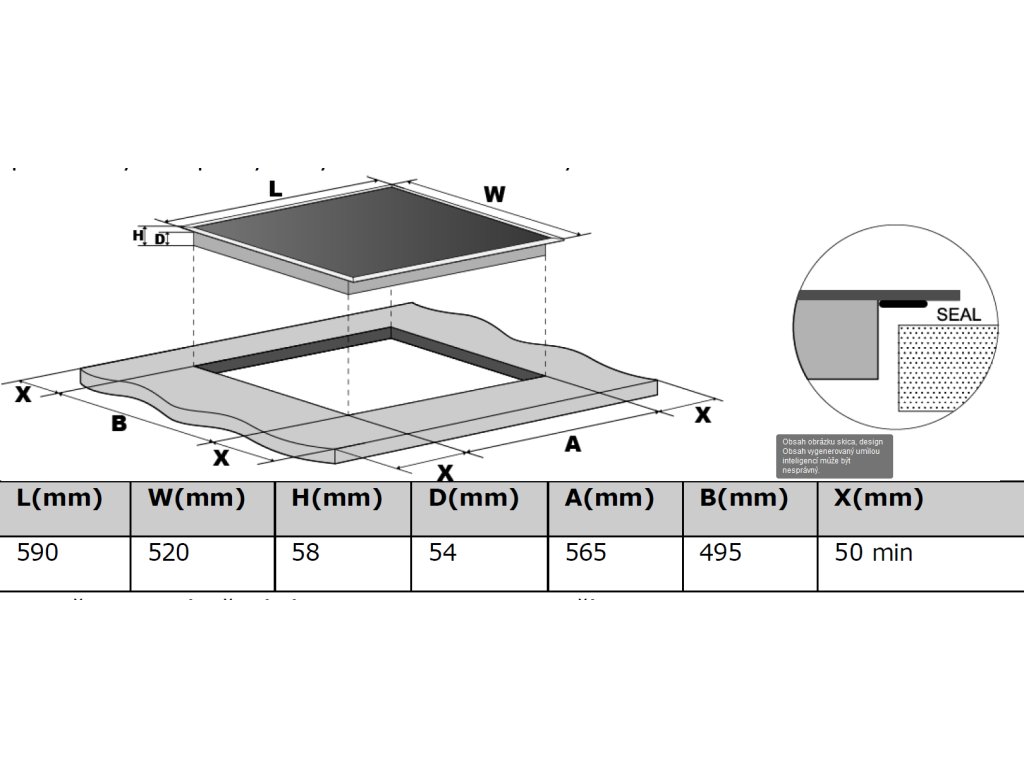 Rozměry otvoru pro vestavbu (V x Š x H): | 56,5 x 49,5 |