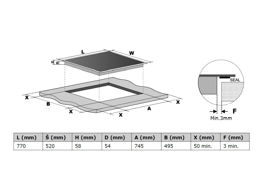 | Rozměry otvoru pro vestavbu (V x Š x H): | 74,5 x 49,5 |