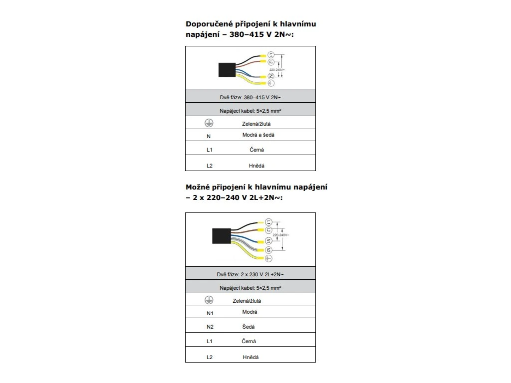 | Elektrické připojení: | 400 V / 50 Hz / 2 x 16 A |