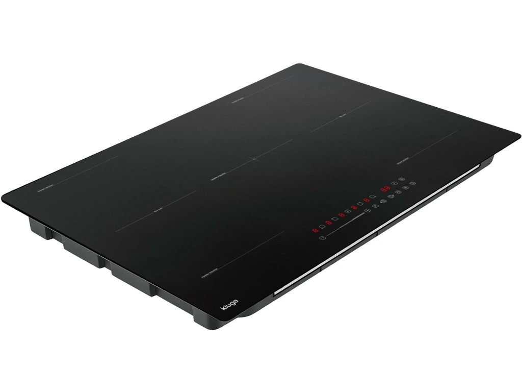 Indukční varná deska s šířkou 80 cm; Povrch z matného černého skla s červeným LED podsvícením dodává desce elegantní vzhled a zajišťuje dobrou čitelnost ovládacích prvků; Dotykové ovládání s plynulým posuvníkem výkonu umožňuje rychlé a přesné nastavení výkonu; 9 stupňů nastavení výkonu a funkce Boost poskytují vysokou flexibilitu při přípravě pokrmů; 5 nezávislých varných zón: levá přední 18 cm / 1,5 kW / Boost 2,0 kW, levá zadní 18 cm / 1,2 kW / Boost 1,5 kW, pravá zadní 18 cm / 1,2 kW / Boost 1,5 kW, pravá přední 18 cm / 1,5 kW / Boost 2,0 kW, střední 21 cm / 2,3 kW / Boost 2,6 kW umožňuje současné použití více nádob; 2x Flexi zóna rozšiřují možnosti vaření s většími nebo atypickými nádobami; Samostatná středová varná zóna o průměru 21 cm je vhodná pro větší hrnce a pánve; 3 funkce vaření zvyšují komfort při každodenní přípravě jídel; Funkce Smart pause umožňuje dočasné pozastavení výkonu všech aktivních zón; Detekce nádobí přispívá k efektivnímu a bezpečnému provozu; Dětský zámek a automatická ochrana vypnutí zvyšují bezpečnost používání; Indikace zbytkového tepla upozorňuje na horký povrch po vypnutí; Časovač lze využít pro automatické vypnutí nebo jako minutku, max. 99 minut; Celkový příkon 9 kW, defaultně nastaven na 7,2 kW s možností řízení výkonu (power management 2,8 / 4,5 / 6,0 / 7,2 / 9 kW); Rozměry (VxŠxH): 5,8 x 77 x 52 cm