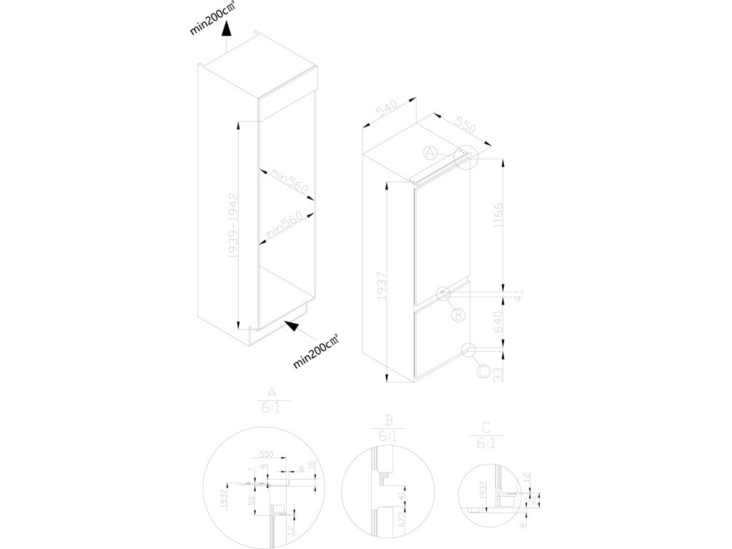 - Vestavná kombinovaná chladnička s mrazákem dole