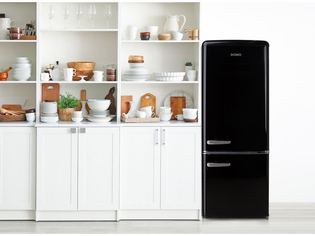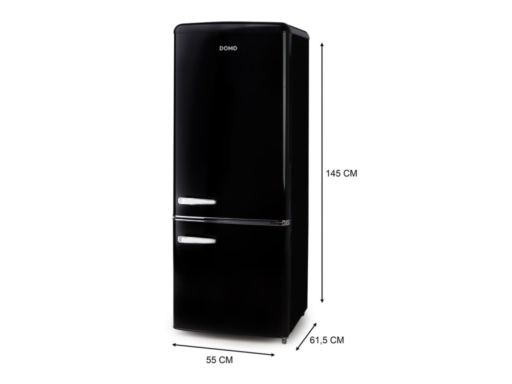 Retro lednice s mrazákem dole - černá - DOMO DO91706R, Objem chladničky: 147 l *, Objem mrazáku: 44 l *, Třída: D
