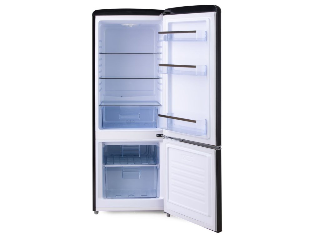 Retro lednice vyvedená v lesklé černé barvě perfektně zapadne do moderního interiéru vašeho bytu a doplní jej svým luxusním vzhledem. Lednici s menším mrazákem dole oceníte nejen pokud zpracováváte zejména čerstvé suroviny, ale také kvůli její nižší spotřebě.
