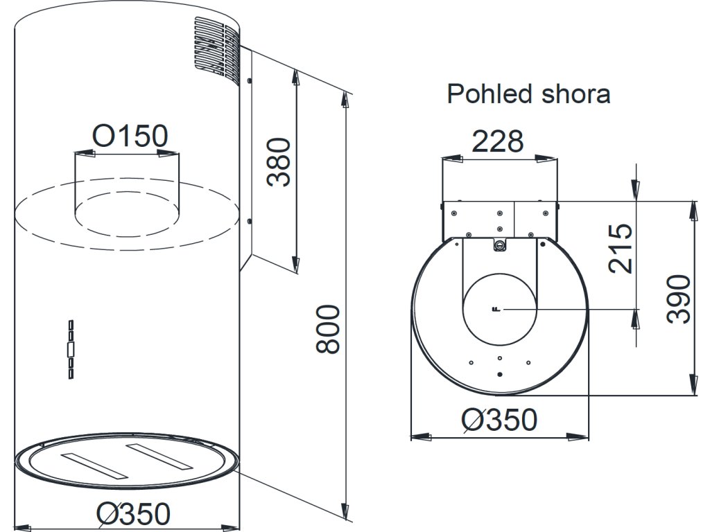 - Průměr odsavače: 35 cm