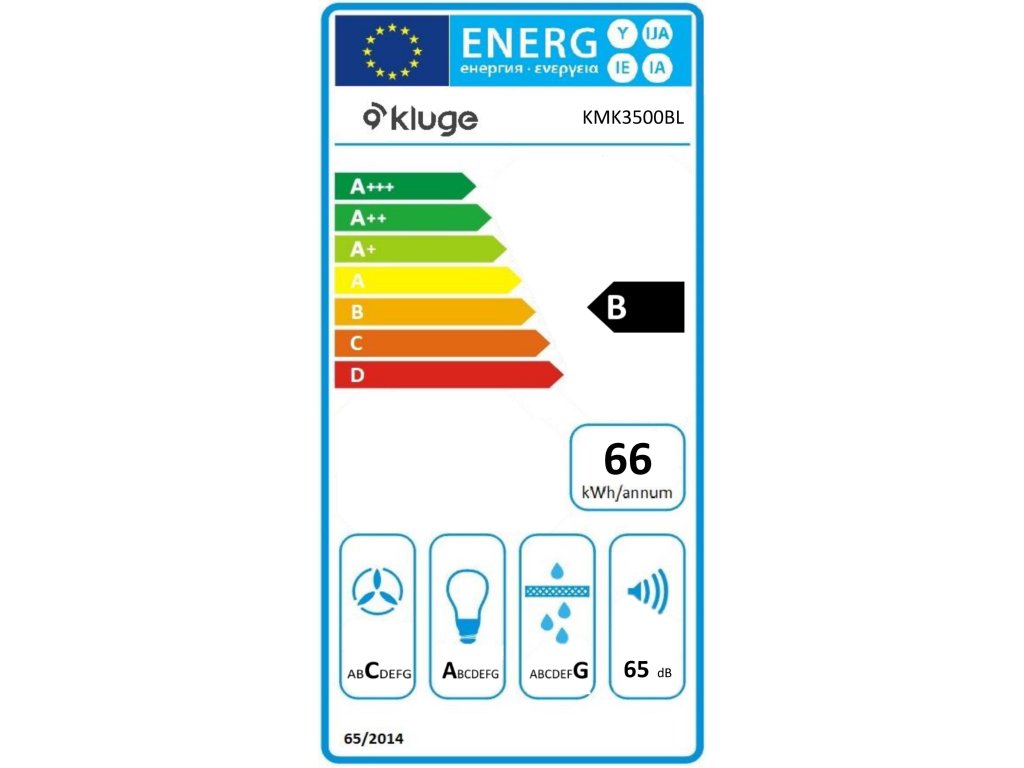 - Energetická třída B ● Roční spotřeba energie 65,7 kWh/a