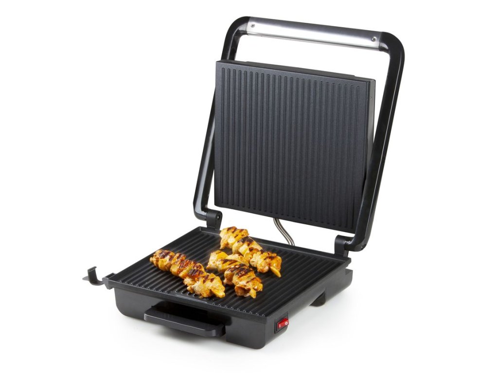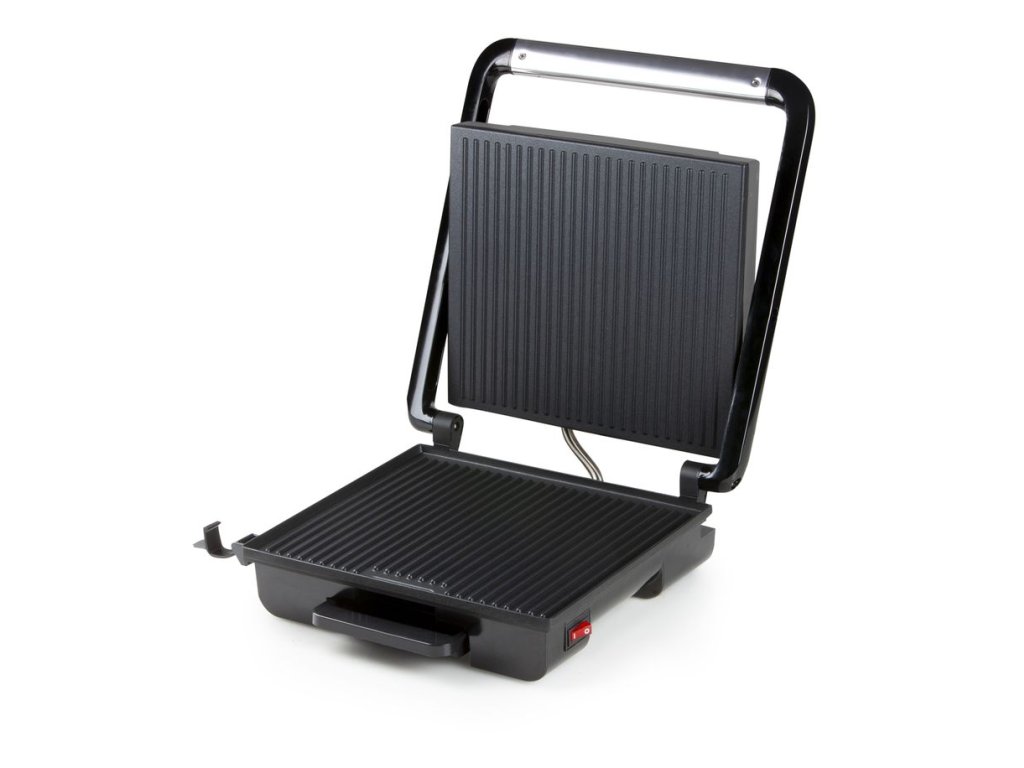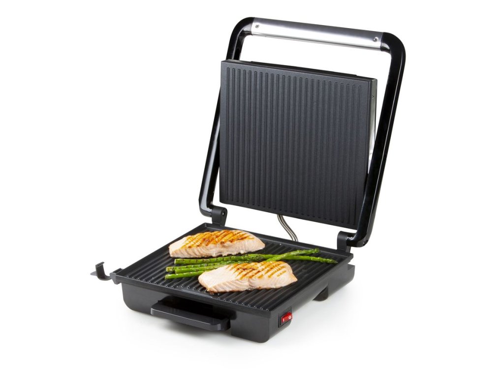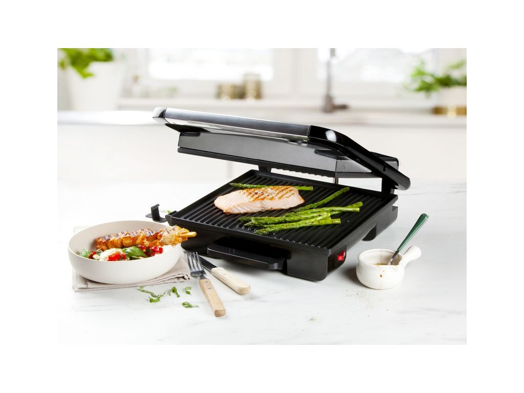 Elektrický kontaktní gril v provedení panini s plovoucí horní deskou vám pomůže zapéct panini i plněné sendviče, ugrilovat ryby, nebo zeleninu a připravit perfektní steaky a jiné maso. Nepřilnavý povrch pečících desek nevyžaduje ani použití tuku, či oleje na smažení a i údržba takového povrchu se stává jednodušší. Nadbytečný tuk a šťáva vypečená z masa odtéká otvorem ve spodní grilovací desce do vyjímatelné nádobky. Rychlost a stupeň propečení si můžete jednoduše regulovat pomocí plynule nastavitelného termostatu. Abyste se nepopálili, je gril vybavený tepelně izolovanou rukojetí i tepelně odizolovaným víkem. Aby gril při uskladnění nezabral zbytečně příliš mnoho místa, lze jej snadno postavit díky zámku víka i na výšku.