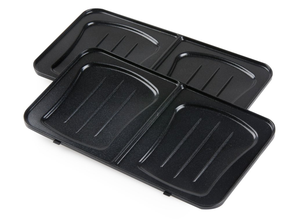 V jednom balení dostanete tři přístroje: sendvičovač, vaflovač a panini gril. Jednotlivé pečící desky se snadno vyměňují a díky kvalitnímu nepřilnavému povrchu i snadno čistí.