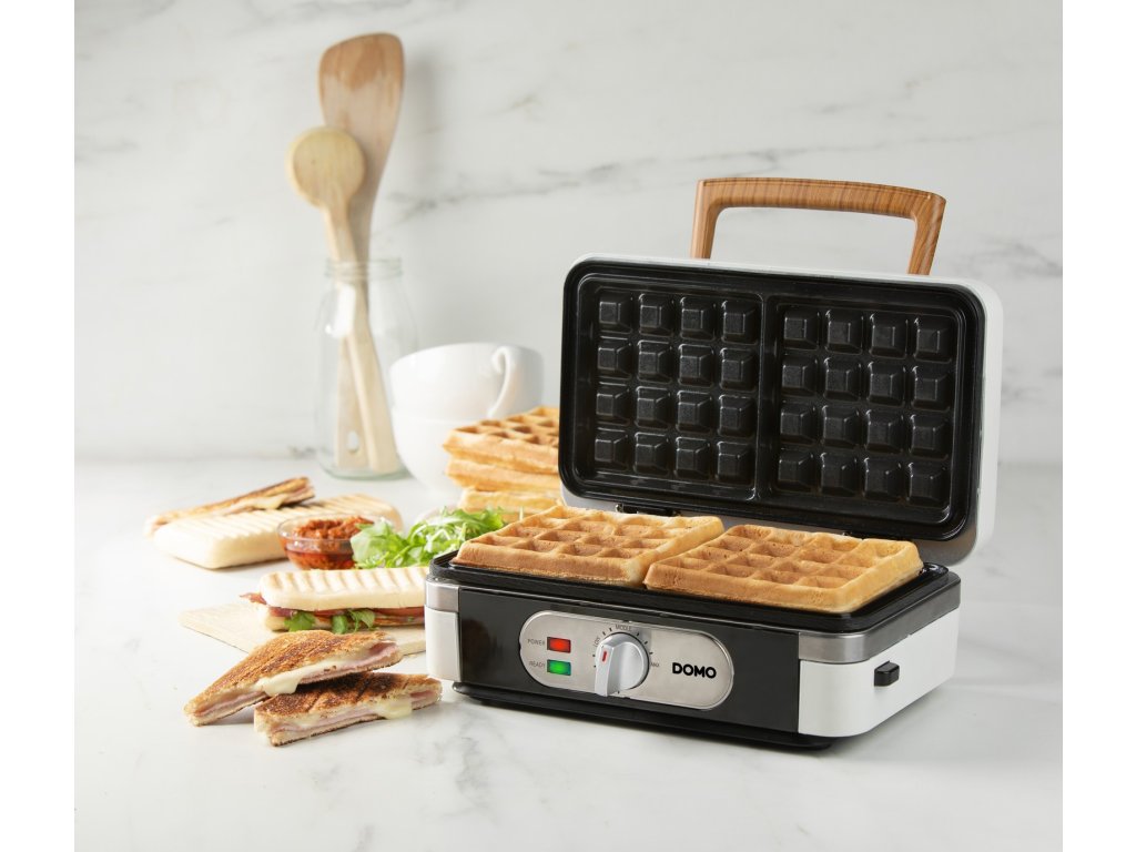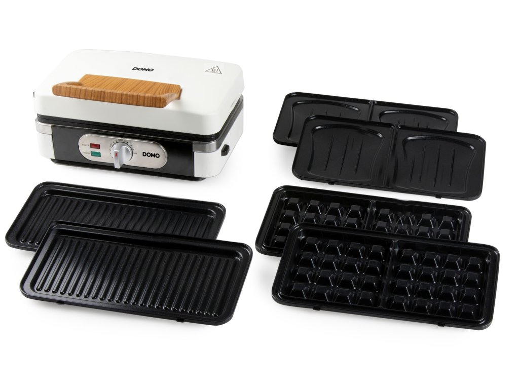 Sendvičovač - Gril - Vaflovač - 3v1 - bílý - DOMO DO9277C, příkon 1 100 W, termostat, bílá barva