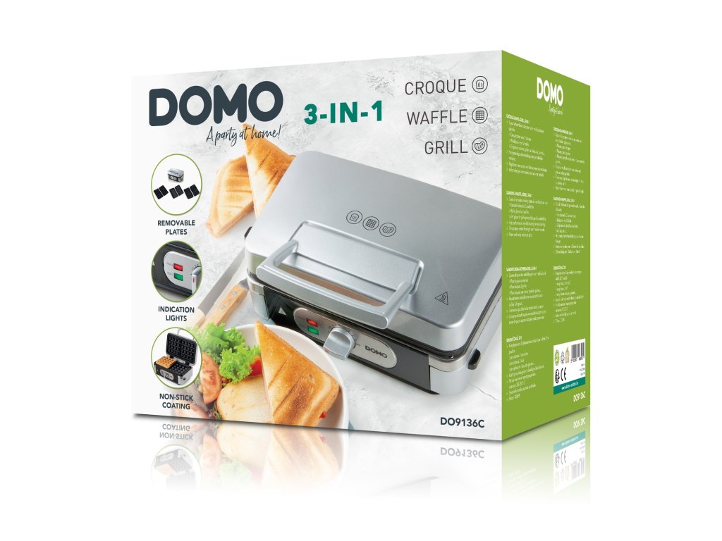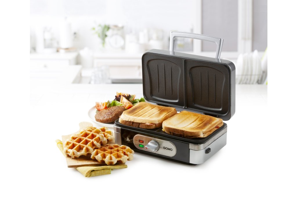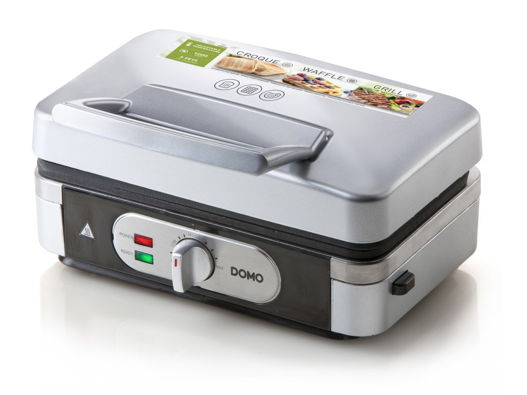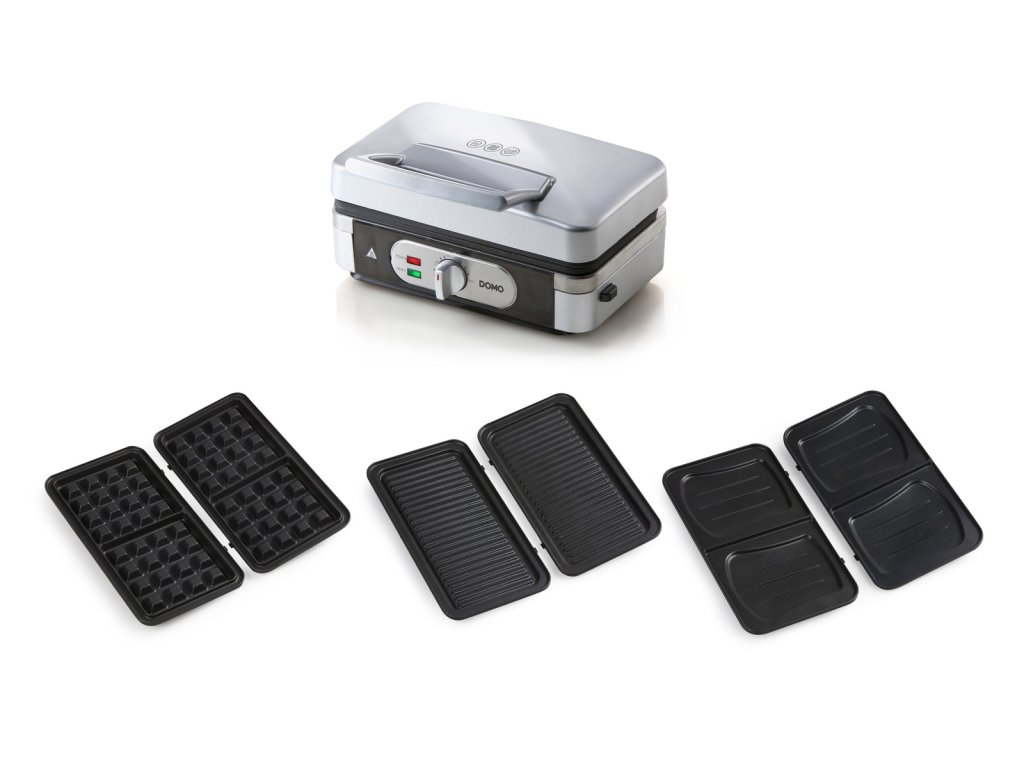 Sendvičovač - Gril - Vaflovač - 3v1 - stříbrný - DOMO DO9136C, příkon 1 000 W, termostat, stříbrný