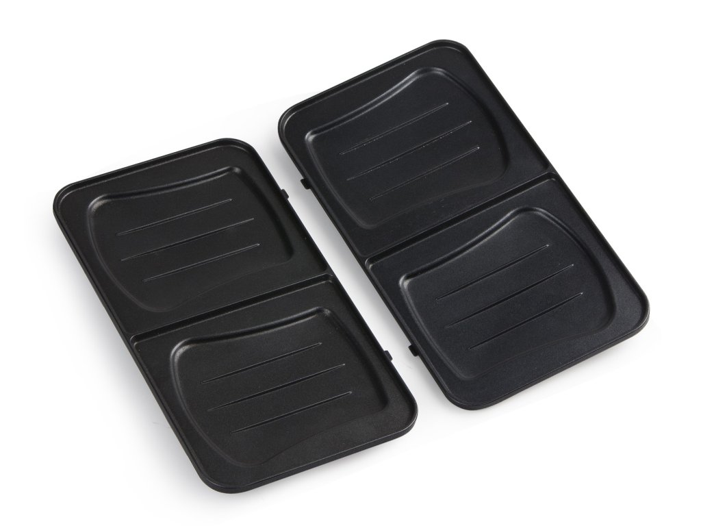 V jednom balení dostanete tři přístroje: sendvičovač, vaflovač a panini gril. Jednotlivé pečící desky jsou snadno vyměnitelné a díky kvalitnímu nepřilnavému povrchu i snadno čistitelné.