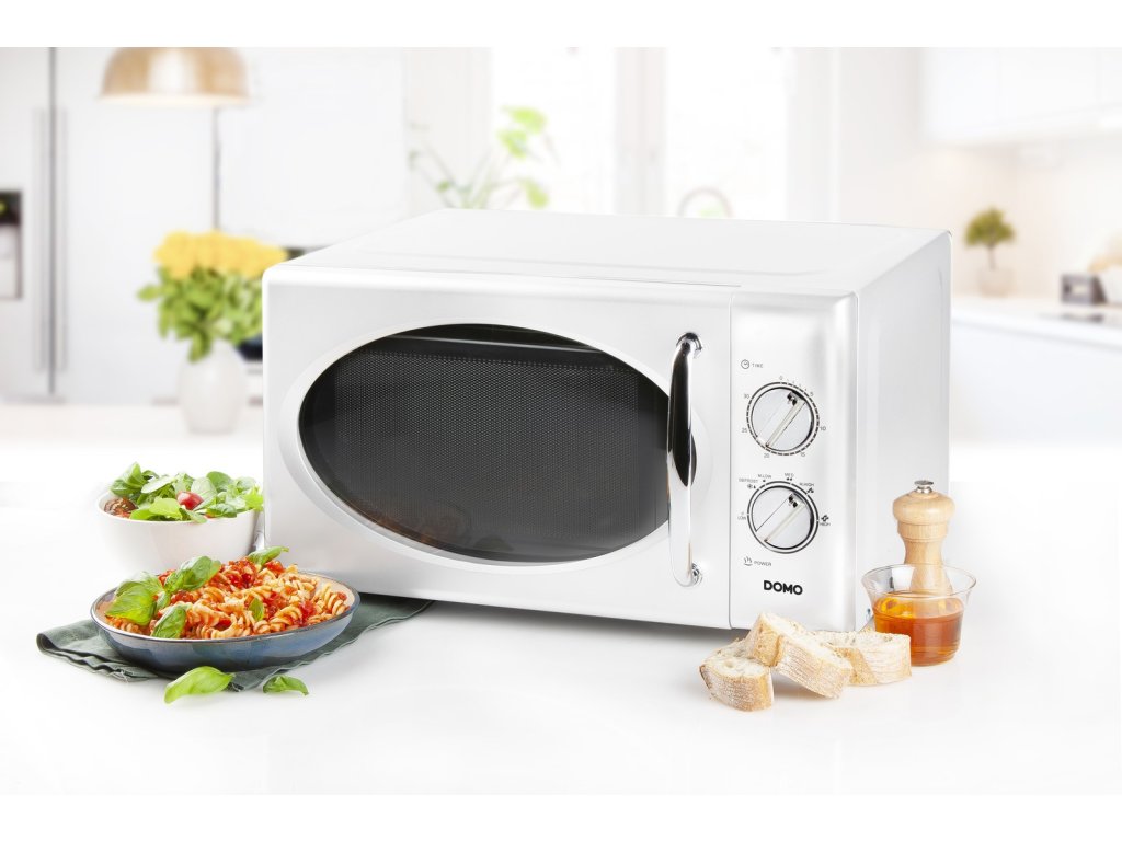 Mikrovlnná trouba retro - bílá - dTest - DOMO DO3125, Objem: 25 l, Talíř: 28,5 cm, Výkon: 900 W, dTest 2025