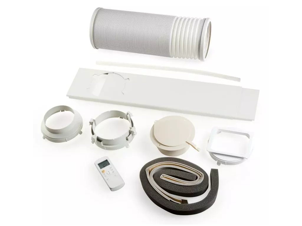 - Sada pro umístění výfuku vzduchu do otevřeného okna (plochý výfukový díl - délka 67,5 cm, pěnové těsnění, adaptér na hadici) - vhodné pro posuvná okna