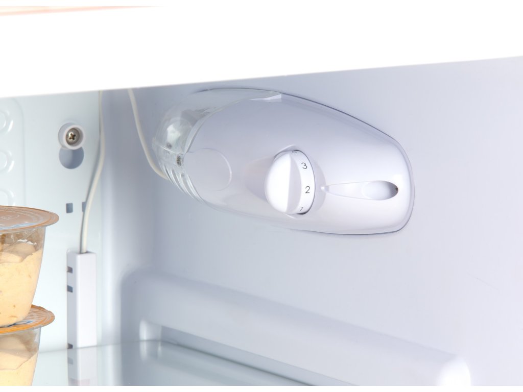 Vniřní prostor je osvětlen a rozdělen pomocí 2 skleněných poliček. Dostatek odkládacího místa zajistí 3 přihrádky na dveřích. Přiznaný (nezalitý do těla přístroje) chladící okruh je efektivnější při chlazení a umožňuje velmi snadno dohledatelný případný únik chladiva.