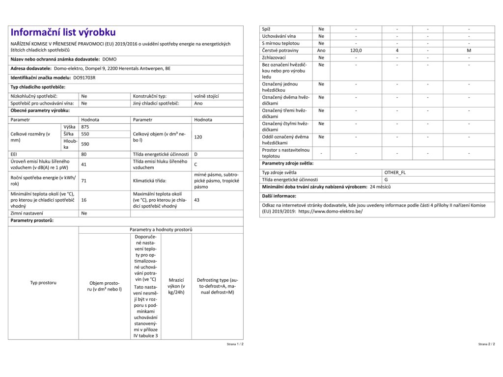 | Klimatická třída N, ST: | 16 oC - 43 oC |
