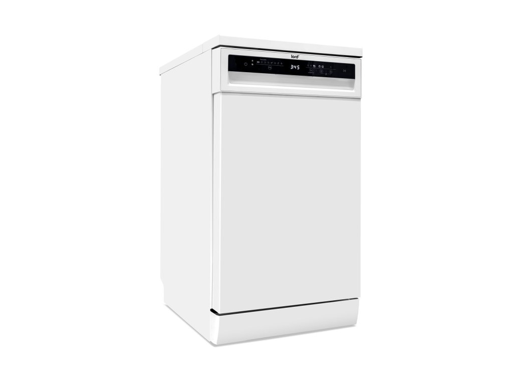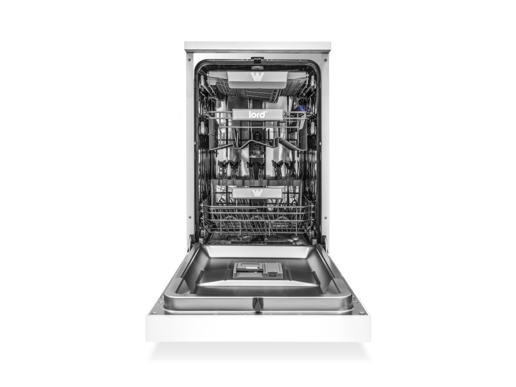 Myčka nádobí LORD D9 Volně stojící myčka nádobí LORD D9 s šířkou 45 cm v bílém provedení potěší každého, kdo nemůže použít vestavný spotřebič. Myčka zvládne najednou 10 jídelních sad. Je vnitřně uspořádána tak, aby se každý kousek nádobí dokonale umyl a vysušil. Nádobí můžete vkládat do tří úrovní, přičemž jedna z nich je určena především na příbory. Ty kolem sebe budou mít spoustu místa a voda i čisticí prostředek se k nim jednoduše dostane. Horní koš je výškově nastavitelný a to i při plném naplnění a je tedy možné rychle zvýšit prostor nad spodním košem pro objemnější nádobí. Spěcháte? Funkce TurboSpeed umožní zkrátit vybraný program Vybrat si můžete z osmi základních programů, například rychlé mytí na 45 °C, intenzivní mytí na 65 °C či ekonomický program s teplotou 50 °C, sklo 50 °C. Pomocí funkce TurboSpeed pak zkrátíte zvolený program. Zvolit můžete i předmytí. Nemáte žádné zvláštní požadavky? Pak určitě oceníte automatický program, který pracuje v rozmezí 55 až 65 °C. Díky speciálním senzorům sám posoudí míru zašpinění vašeho nádobí. Právě dle toho zvolí teplotu a také potřebný objem vody. Díky displeji budete mít vše pod kontrolou Veškeré funkce a programy snadno nastavíte díky přehlednému LED displeji. Ten navíc umožňuje nepřetržitou kontrolu nad průběhem mytí. Informuje vás například o čase zbývajícím do konce mycího programu. Potřebujete, aby se myčka spustila třeba v noci, nebo když nejste doma? Pak jistě oceníte možnost odložení mytí až o 24 hodin. Bojíte se, že myčka ve vaší nepřítomnosti třeba vytopí byt? Tomu zabrání funkce AquaStop, která dokáže zabránit nehodám v případě poruchy spotřebiče či přívodní hadice. LORD D9 má nízkou hlučnost – jen 42 dB. Díky tomu se může pochlubit třídou hlučnosti B a nebude vás tak rušit. Několik důležitých údajů k myčce LORD D9 Energetická třída: B Spotřeba vody: 8 l Spotřeba elektřiny na jeden cyklus: 0,51 kWh Hlučnost: 42 dB Kapacita: 10 jídelních sad Programy Rychlé mytí 45 °C Intenzivní 65 °C Univerzální 55 °C Eco 50 °C Automatický 55–65 °C Sklo 50 °C 90 minut 60 °C Předmytí Výhody myčky LORD D9 Provozní hlučnost je jen 42 dB, a tak ji můžete používat i v noci. Nabízí pestrou paletu 8 základních programů, které jsou doplněné dalšími přídavnými a praktickými funkcemi, jako Turbo speed , nebo funkce spodního a horního ramena Přehledný LED displej usnadňuje veškerá nastavení. Myčka je vybavena systémem vodní ochrany a samočistícím trojitým filtrem. Po skončení cyklu dojde k automatickému pootevření dvířek. Prakticky uspořádaný vnitřní prostor myčky zaručuje perfektní výsledek Uspořádání vnitřního prostoru myčky zaručuje, že všech 10 jídelních sad bude dokonale umytých a usušených. Najdete zde i příborovou zásuvku, díky které budete mít příbory stále dokonale umyté. Možnost nastavení výšky horního koše umožní mytí vyššího nádobí. Kontrolu a nastavení provedete snadno pomocí LED displeje LED displej vám umožní neustále kontrolovat zvolené programy a usnadňuje veškerá nastavení. Informuje o čase, který zbývá do konce mytí, a upozorní na to, že je potřeba doplnit sůl nebo leštidlo.Doplňkové parametry