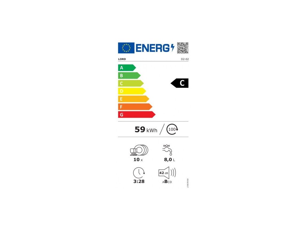 Vestavná myčka nádobí LORD D2 o šířce 45 cm se řadí do energetické třídy C. Myčka dokáže pojmout celkem 10 jídelních sad. - JSME VÝHRADNÍ DOVOZCE DO ČR.Doplňkové parametry