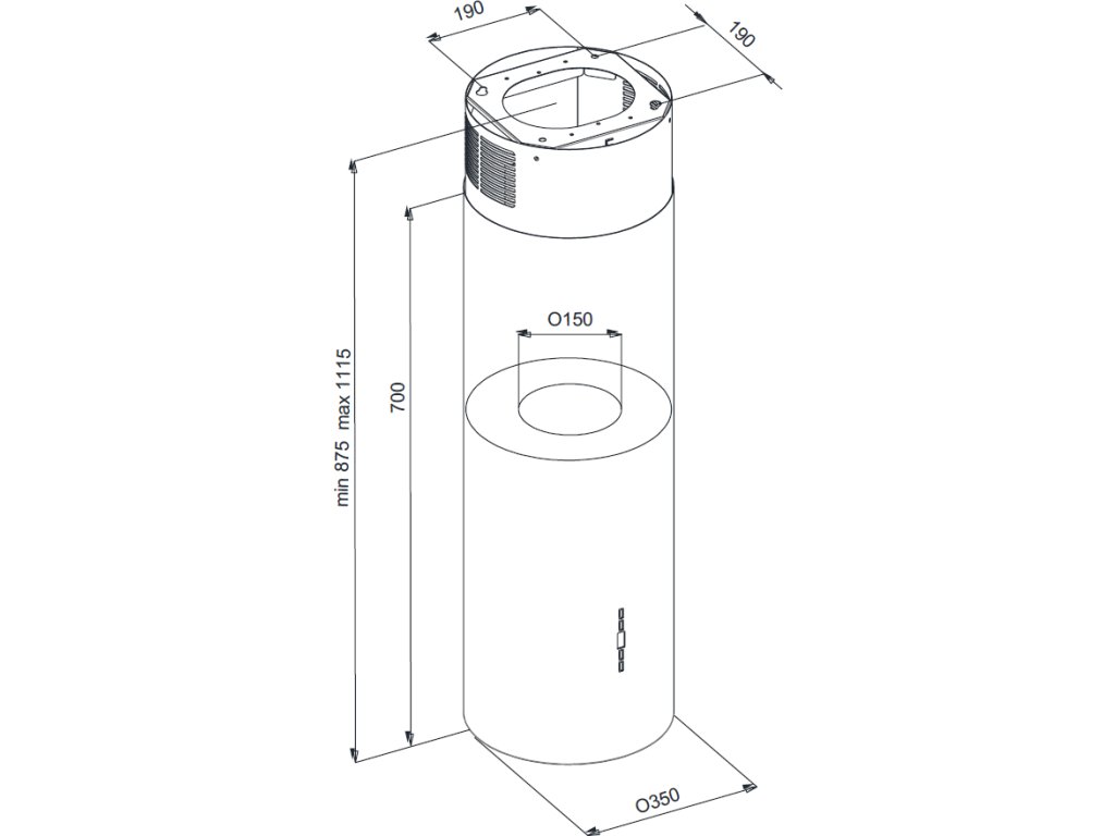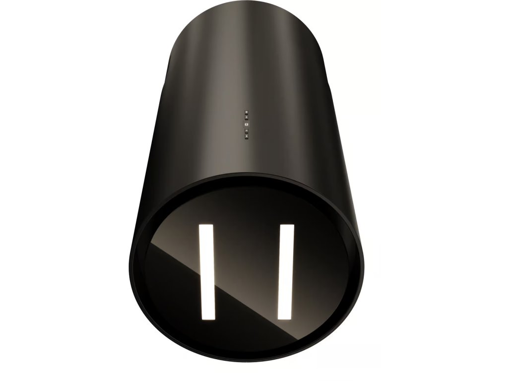 Ostrůvkový odsavač par o průměru 35 cm v černém barevném provedení kov, sklo; Soft touch tlačítkové podsvícené ovládání; Bíle podsvícený displej; Dálkové ovládání; 3 stupně nastavení výkonu odsávání + Boost; 2x LED osvětlení pásek 6 W; Teplota osvětlení 3800 K; Výkon odtahu: 260 - 490 m3/h (565 m3/h v BOOST); Hlučnost 51 - 65 dB(A) (68 dB(A) v BOOST); 1 ks hliníkový 3 vrstvý tukový filtr vhodných do myčky nádobí; Zpětná klapka součástí balení; Instalace na odtah nebo recirkulaci; Filtr z aktivního uhlíku pro režim recirkulace: 2x FR-0846 (náhrada za FWN130 a FWMGPZ) není součástí balení; Třída energetické účinnosti B; Roční spotřeba energie: 65,7 kWh; Rozměry (VxŠxH): 87,5 - 111,5 x 35 x 35 cm