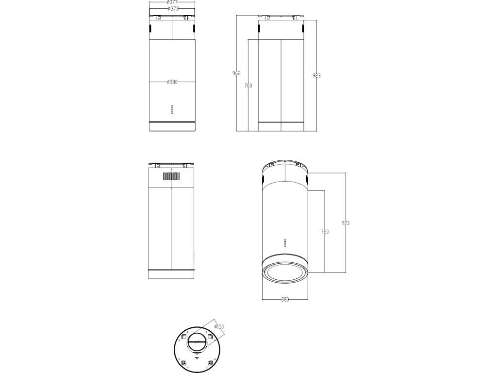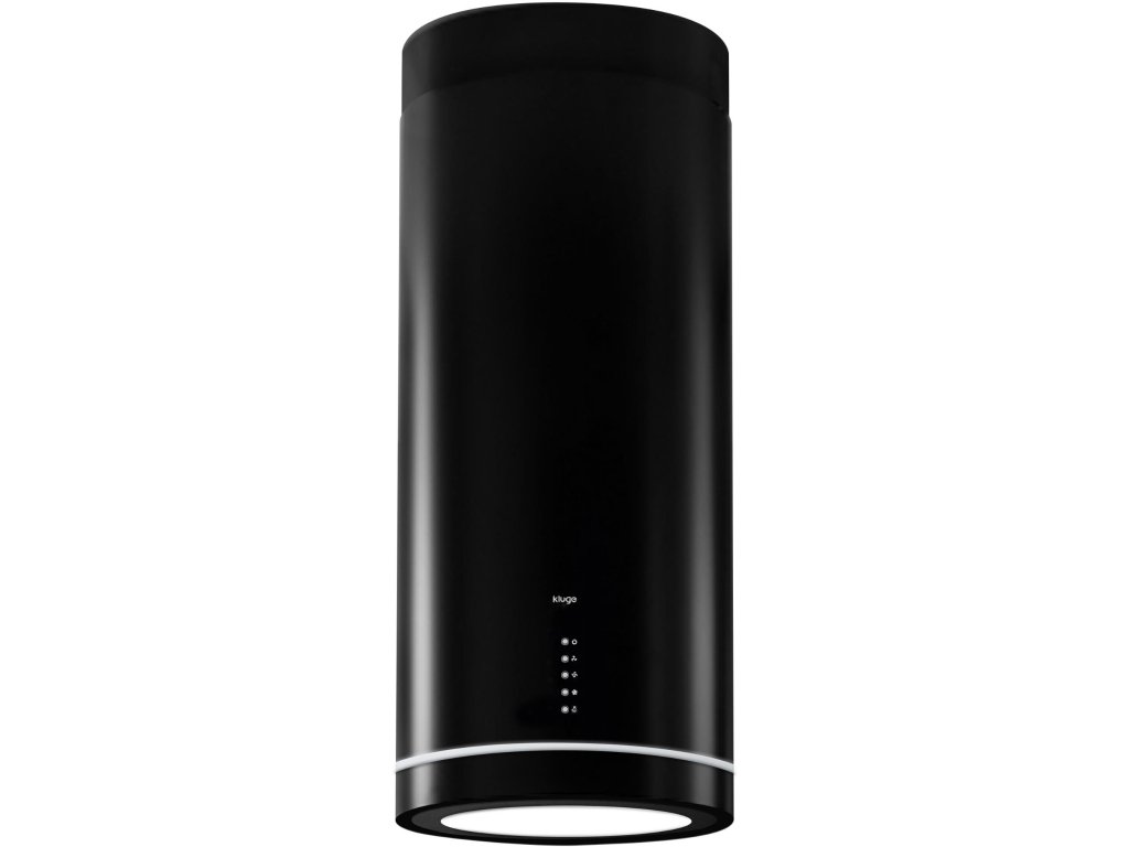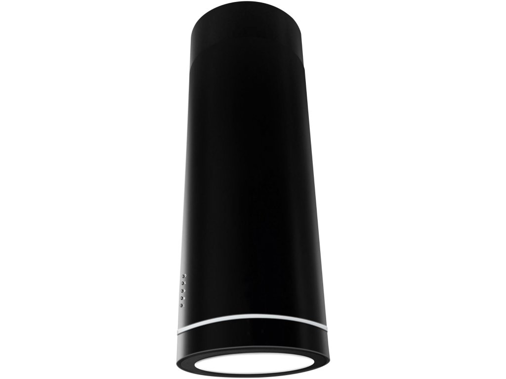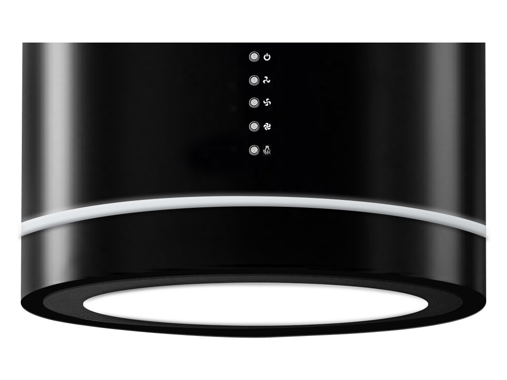Ostrůvkový odsavač par o průměru 38 cm v černém barevném provedení kov; Ovládání je tlačítkové elektronické podsvícené; K dispozici jsou 3 stupně nastavení výkonu odsávání + Boost; Typ osvětlení je 7,5 W se spodním LED panelem a designovým světelným kroužkem 6 W; Světlo je možné upravit nastavením jasu, kde lze cyklicky přepínat mezi hodnotami 100%, 75% a 50%; Teplota světla je také nastavitelná, a to v šesti krocích od 3200K (teplá) po 6500K (studená); Výkon odtahu je 250,5 – 485 m³/h (544,9 m³/h v režimu Boost); Hlučnost dosahuje 49 – 64 dB(A) (67 dB(A) v režimu Boost); Uhlíkové filtry pro recirkulaci; Třída energetické účinnosti A; Roční spotřeba energie 29 kWh; Rozměry (VxŠxH): 92,3 – 96,2 x 38 x 38 cm