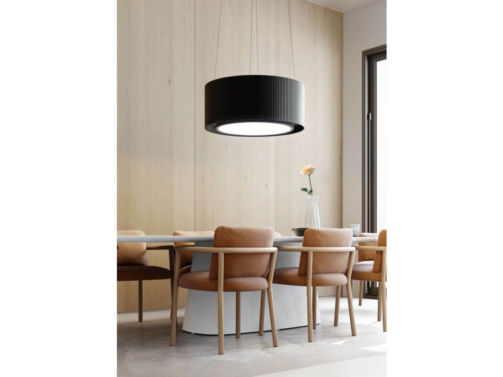 Ostrůvkový odsavač MONO LIGHT 80 BLACK z prémiové řady designových odsavačů Ciarko Design; Kombinace odsávání s moderním elegantním LED osvětlením; Provedení černý matný kov; Unikátní plisovaný (žebrovaný) povrch, který dodává kuchyni stylový vzhled; Moderní design: Nabízí elegantní a moderní vzhled, který doplní různé styly kuchyní; Anti Fingerprint povrch: Saténový povrch, který odolává otiskům prstů a nečistotám a snadno se čistí; Ručně malovaný, třívrstvý nátěr pro větší odolnost a estetický vzhled; Velký světelný panel poskytuje rovnoměrné a intenzivní osvětlení nad varnou plochou; LED Warm2Cold osvětlení: Nastavitelná teplota světla od 2900K (teplé) do 6000K (chladné), což zlepšuje vzhled a funkčnost vaší kuchyně; Instalace na recirkulaci; Long Life filtry z aktivního uhlíku pro režim recirkulace: Odolné filtry Long Life M/P, snadná instalace shora s životností až 3 roky, regenerovatelné každých 4-6 měsíců a vhodné do myčky nádobí; Tichý, úsporný, výkonný a spolehlivý BLDC (invertorový) motor s dlouhou životností; GestureControl: Bezdotykové ovládání digestoře: osvětlení a rychlosti ventilátoru; Dodává se s dálkovým ovládáním pro větší pohodlí; 4 stupně intenzity odsávání včetně BOOST; Kompatibilita s indukčními varnými deskami Ciarko Design; Výkon odtahu ve standardním režimu 180 - 360 m3/h; Výkon odtahu v režimu BOOST až 640 m³/h; Hlučnost ve standardním režimu 41-56 dB; Hlučnost v režimu BOOST až 67 dB; Energetická třída A+; Roční spotřeba energie 37 kWh; Rozměry (VxŠ): max 285,6 x 80 cm