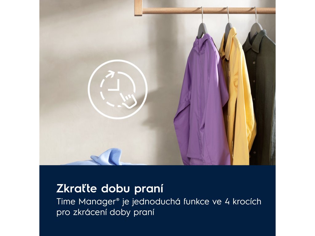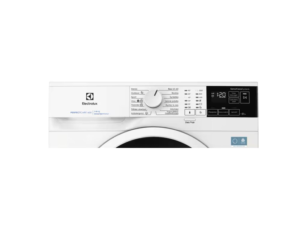 Electrolux EWS6426WC je úzká předem plněná pračka se šířkou pouze 38 cm, ideální do menších koupelen. Přesto zvládne až 6 kg prádla a patří do energetické třídy A. Díky technologiím SensiCare a TimeManager se délka programu přizpůsobí aktuálnímu množství prádla, takže šetří čas, vodu i energii. Kapacita 6 kg je vhodná pro menší domácnost, maximální rychlost odstřeďování 1200 ot./min zajišťuje účinné odstředění a kratší dobu sušení. Parní antialergický program Steam Anti-Allergy kombinuje praní a páru pro hygienicky čisté prádlo a redukci alergenů. Funkce SoftPlus se postará o lepší rozložení aviváže a jemnější prádlo, invertorový motor pak zajišťuje tichý chod a dlouhou životnost. V nabídce programů najdeš mimo jiné Eco 40–60, program pro syntetiku, jemné prádlo, vlna/hedvábí, antialergický program s párou a rychlé praní, včetně krátkého 14minutového programu pro lehce zašpiněné prádlo. Funkce TimeManager umožňuje zkrátit dobu praní podle potřeby, zatímco odložený start ti dává možnost naplánovat praní na dobu, která ti vyhovuje. Díky kompaktním rozměrům 843 × 595 × 378 mm se pračka snadno vejde i do stísněných prostor, aniž bys musel dělat kompromisy ve výbavě. Přední panel je v češtině, takže ovládání je přehledné a intuitivní.Doplňkové parametry