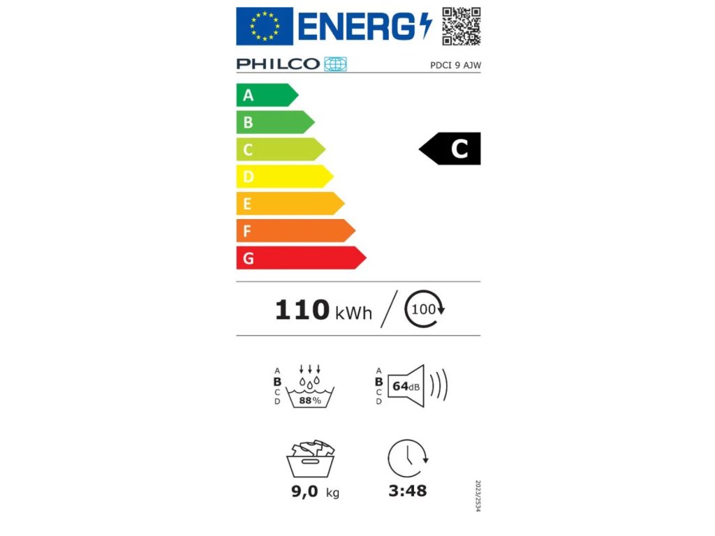 Kondenzační sušička prádla Philco PDCI 9 AJW je díky kapacitě 9 kg prádla ideální pro rodiny s větším množství prádla. Sušička pracuje v nejvyšší energetické třídě E (staré označení A+++) a využívá technologii tepelného čerpadla, které šetří energii a náklady na elektřinu. Úsporná energetická třída A+++ je umožněna kombinací invertorového motoru, který se postará o dlouhodobě bezproblémový chod, pracuje tiše a spolehlivě s nízkou spotřebou a na jeho kvalitu poskytujeme záruku 10 let, a technologie tepelného čerpadla, které v uzavřeném systému horký vzduch recykluje, získanou energii znovu použije do procesu sušení a neodvádí ji zbytečně ven.Sušička nabízí širokou škálu programů pro bavlnu, syntetiku či jemné prádlo. Program Péřové je určený pro peřiny nebo bundy, Sportovní pro dresy a outdoorové materiály a Antialergenní zbaví prádlo alergenů a je vhodný pro sušení oblečení citlivých osob, malých dětí nebo ložního prádla. Užitečný je také program Osvěžení lehce nošeného prádla. Zapnout ho můžete na 5, 10 nebo 15 minut a po tu dobu v sušičce proudí neohřátý vzduch, který z oblečení vyfouká nežádoucí pachy nebo povrchové nečistoty.