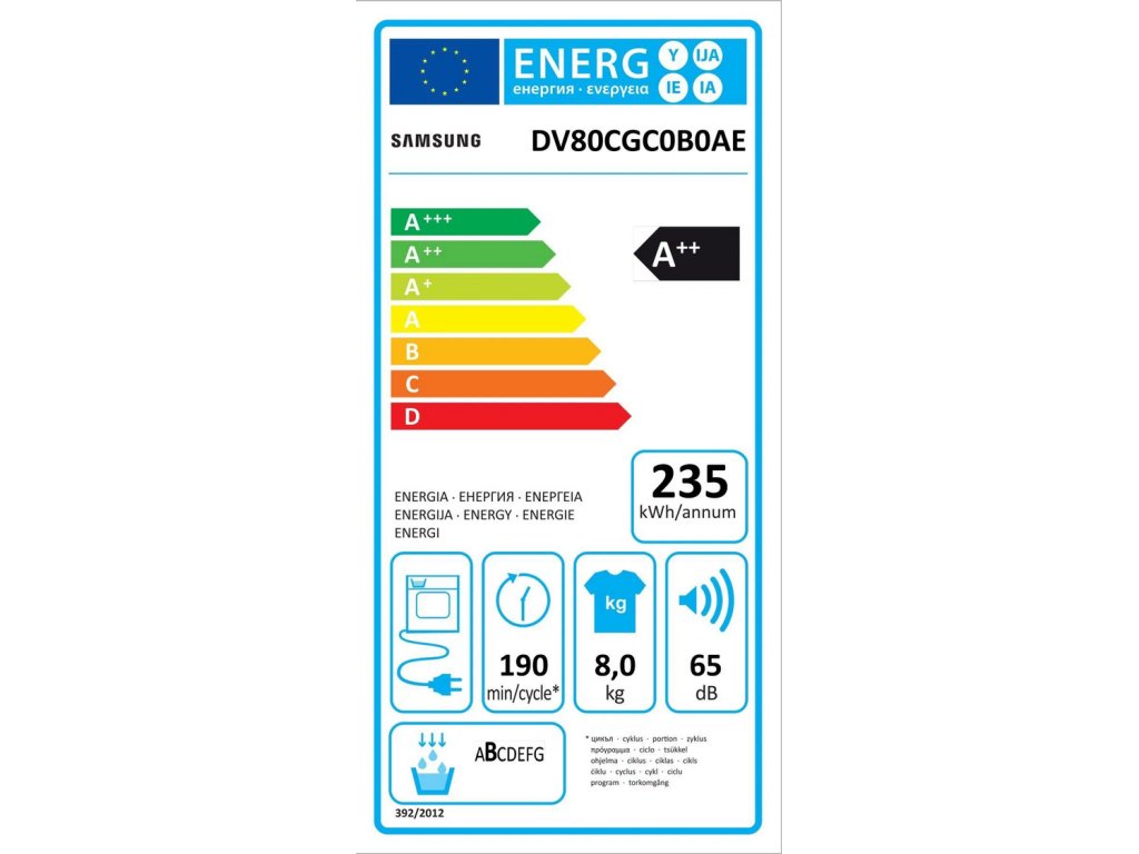 Sušička Samsung DV80CGC0B0AELE s energetickou účinností E