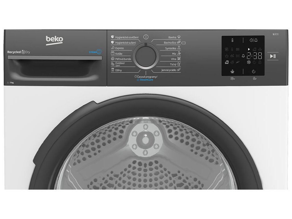 SteamCure během cyklu využívá páru pro osvěžení prádla, redukci pachů a menší pomačkání. Výsledkem je prádlo, které se lépe žehlí (nebo často není potřeba žehlit vůbec). Nechybí ani vnitřní osvětlení bubnu – pomůže při vyndávání i „zatoulaných“ kousků.
