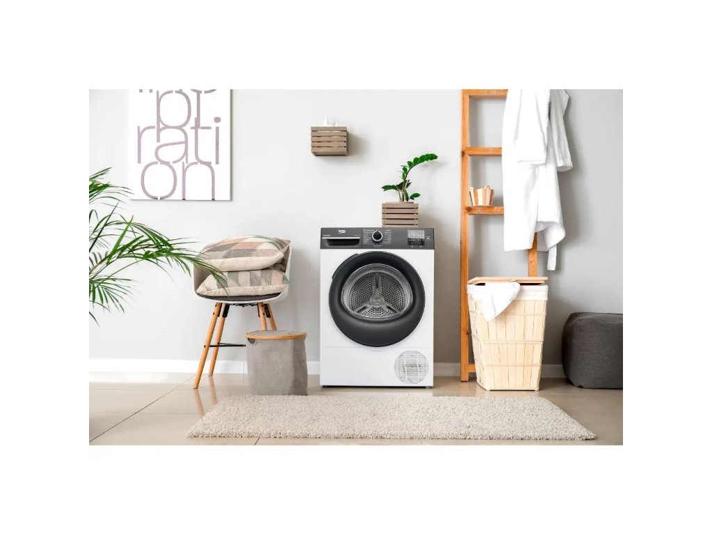 Kompaktní sušička s tepelným čerpadlem pro domácnosti, kde se řeší každý centimetr. Nabídne kapacitu 7 kg, 15 programů, senzorové sušení OptiSense® a tichý chod kolem 64 dB(A). Technologie EcoGentle™ suší při nižších teplotách a pomáhá šetřit energii, ProSmart™ invertorový motor přispívá k úspornému a spolehlivému provozu. Praktická je i pára SteamCure pro osvěžení prádla a vnitřní osvětlení bubnu.