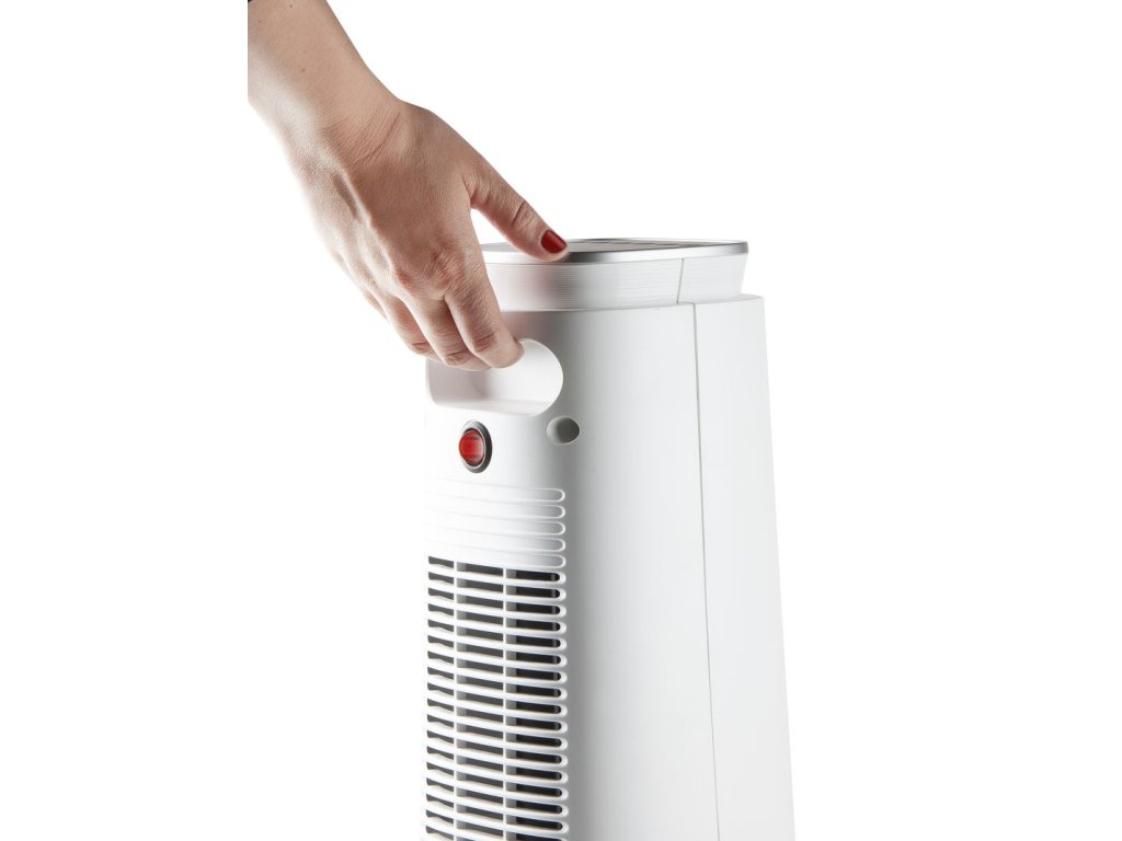Teplovzdušný ventilátor ve sloupovém provedení s možností oscilace do stran. Keramické topení o příkonu 2000 W spolu s vestavěným ventilátorem umožňuje velmi rychle a efektivně ohřívat vzduch v celé místnosti. Vysoký komfort ovládání pak zajišťuje dotykový panel s přehledným LCD displejem a dálkový ovladač pro ovládání všech funkcí topení.