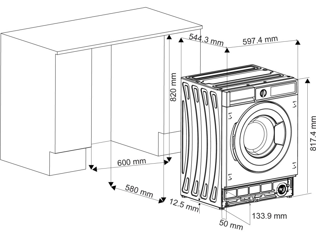 - Vestavná pračka předem plněná s kapacitou až 8 kg prádla