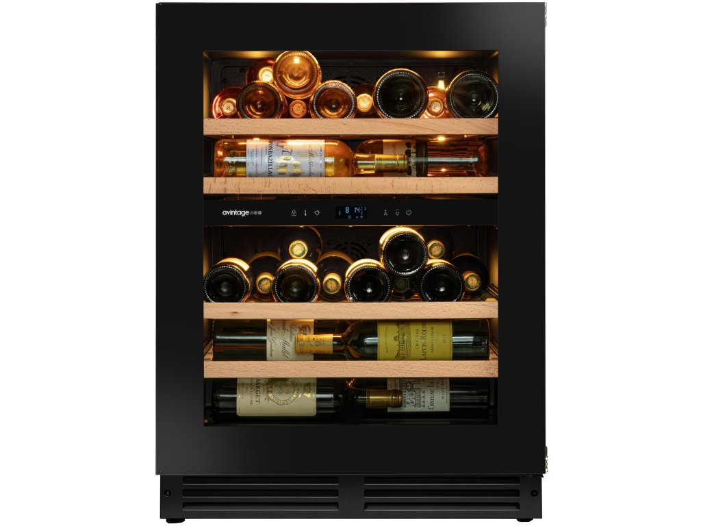 Dvouzónová servírovací vinotéka Avintage AVU50 Platinum nabízí elegantní řešení pro skladování až 47 lahví vína. Díky možnosti volně stojící nebo vestavné instalace pod pracovní desku se hodí do jakéhokoli interiéru. Prosklené dveře s UV filtrem chrání víno před světlem, zatímco flexibilní teplotní nastavení ve dvou zónách vám umožňuje udržet ideální podmínky pro červená i bílá vína.