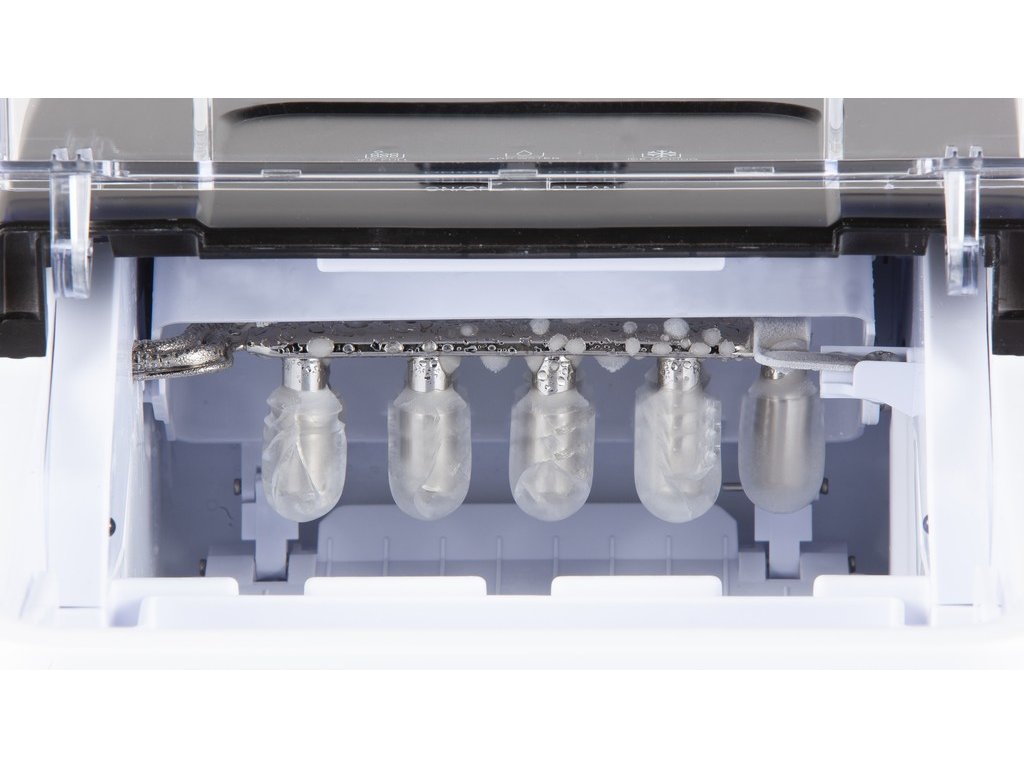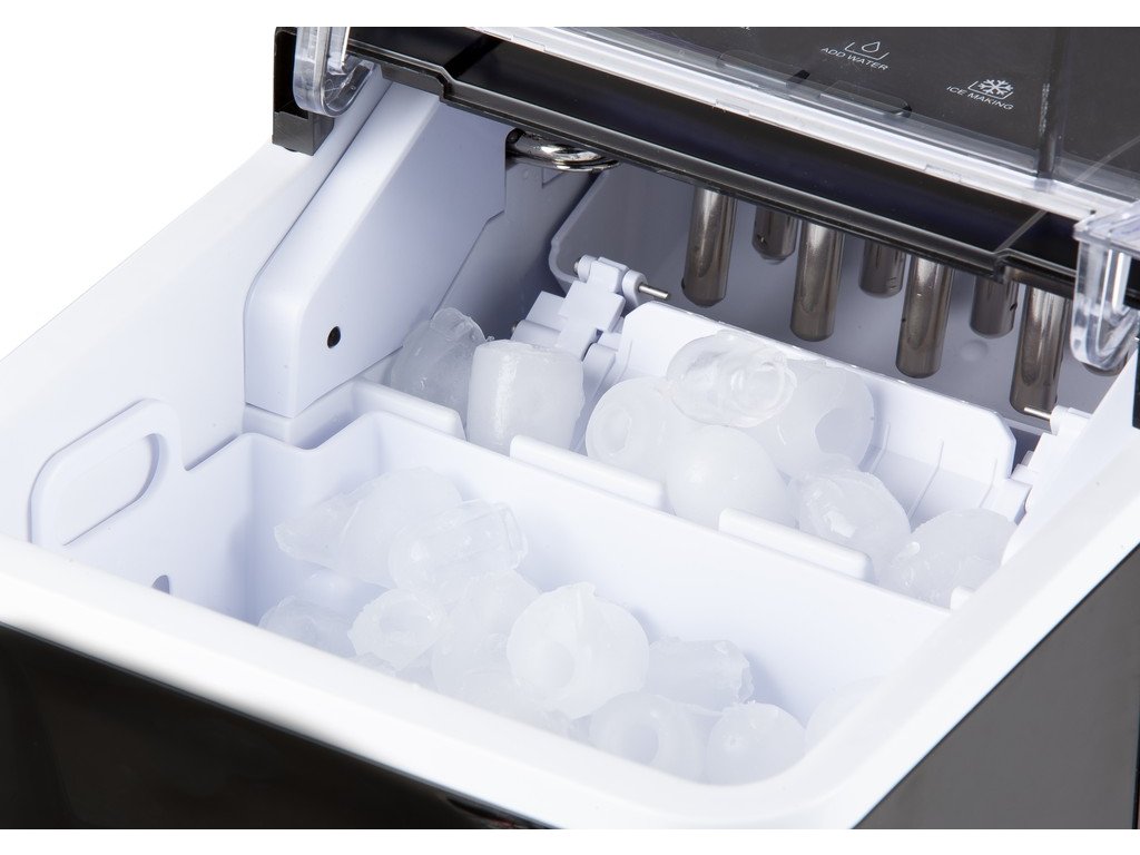 Přidejte vodu do zásobníku na vodu, zapněte přístroj a za pouhých 9 minut máte připravené první ledové kostky.. Potřebujete větší množství? Nepropadejte panice, tento výrobník ledu dokáže vyrobit až 12 kg ledu za den!